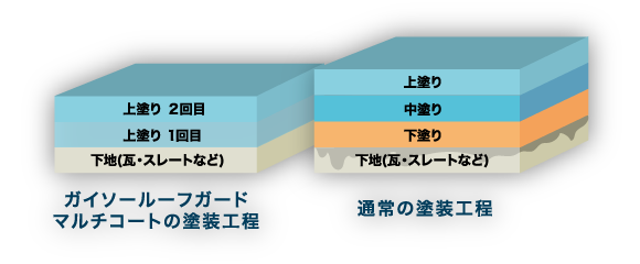また塗膜をクリヤー層で保護することで耐UV性と耐酸性を強化し、フッ素に勝る超高耐候性(光沢低下防止・退色防止)が得られます。